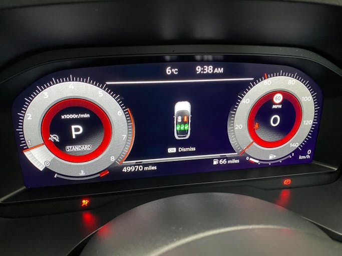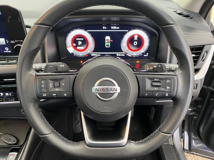 18in Alloy Wheels - Diamond Cut, Panoramic Roof, Nissan Connect 9in Touchscreen Infotainment System, 7in High Definition Full Colour TFT Screen Combimeter, NissanConnect Navigation, AM-FM Audio System with DAB, Bluetooth with Audio Streaming, Android Auto, Wireless Apple CarPlay, 6 Speakers, Automatic Dual Zone Climate Control with Pollen Filter, Intelligent Cruise Control, Leather Steering Wheel, Multifunctional Steering Wheel, Electric Adjustable Lumbar Support on Driver Seat, Door Mirror - Electrically Adjustable - Heated - Auto Folding with LED Turn Indicator, Front and Rear Parking Sensors, Intelligent Key, Rear Privacy Glass, Rear View Camera, Electric Parking Brake, Drive Modes - Sport-Normal-Eco, Auto Dimming Rear View Mirror, Headlights - LED, Intelligent Auto Headlight, Dusk Sensor, Rain Sensing Wipers, Headlights - High Beam Assist, Intelligent Blind Spot Intervention, Blind Spot Warning, Lane Departure Warning, Traffic Sign Recognition, Thatcham Alarm System